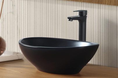 LAVAMANOS SOBREPONER CERAMICA NEGRO TIPO ESTADIO 41X34X14.5CM