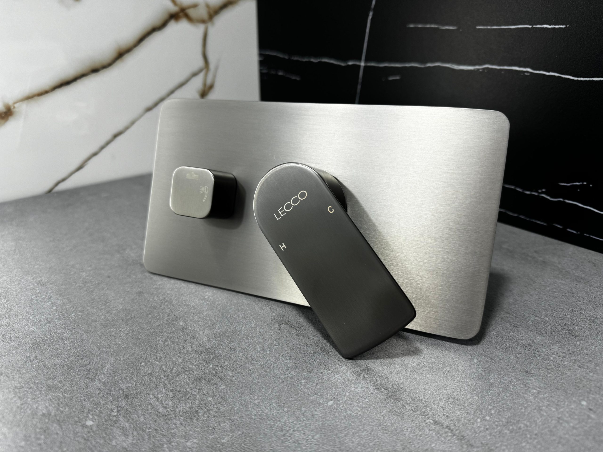 KIT REGADERA 20CM+BRAZO PARED 40CM GRAFITO LECCO6594