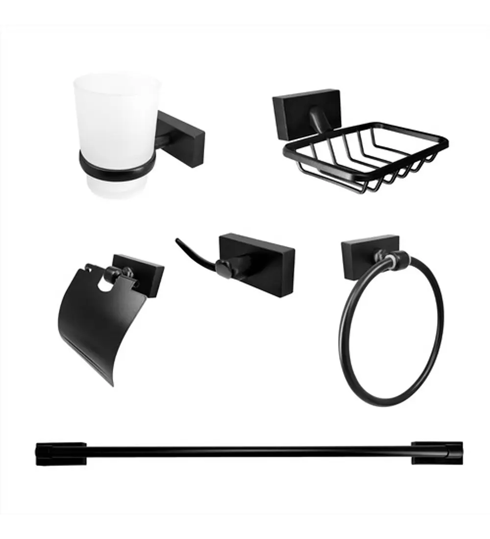 SET DE ACC BAÑO X 6 PZS BLACK CUADRADO cantidad